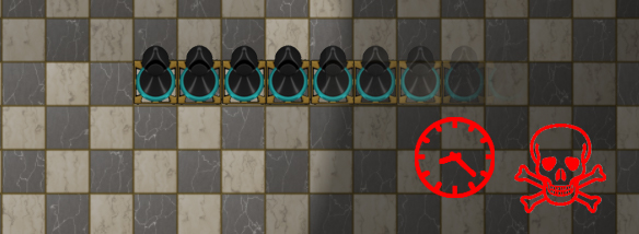 Pieces will fade away if they are too far from their king. Pieces inside the circle are safe, and pieces outside have a limited time to live.